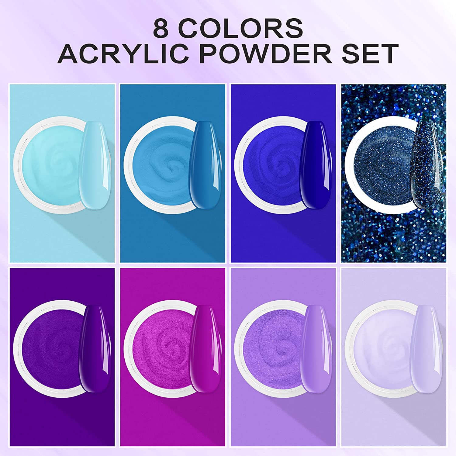 Modelones Acrylic Powder 12 Colors Pink Glitter Acrylic Nail Powder Professional Polymer Nails Violet Purple Nail Acrylic Powder For 3d Manicure Nail Extension French Nails No Nail Lamp Needed